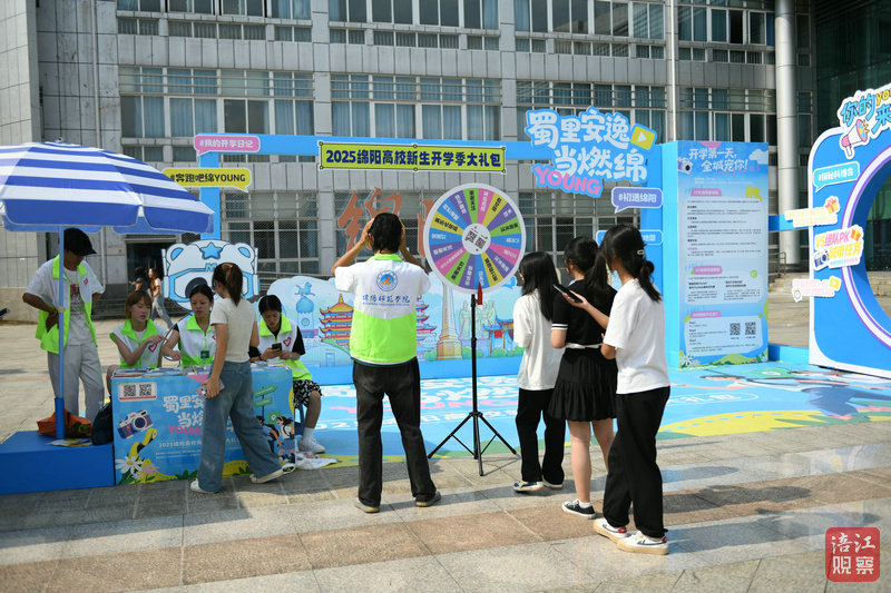 当天,记者在绵阳师范学院高新校区图书馆广场看到,高校新生开学季大礼包发放活动正火热进行。鲜明的人文特色氛围、造型独特的打卡墙、精心布置的迎新装置,吸引了新生和家长前来打卡、参与活动。