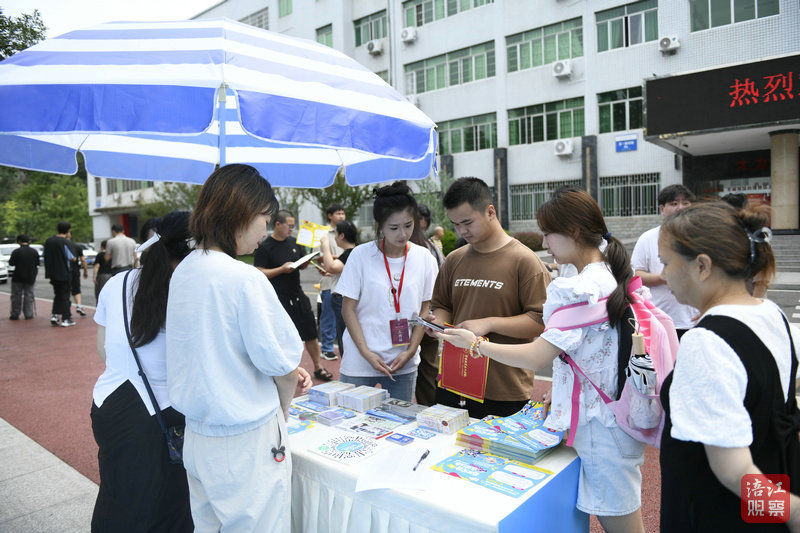 活动现场人气爆棚,新生们纷纷拿起手机,扫码关注绵阳商务公众号并下载涪江观察APP参与活动,开心地在打卡墙拍照、转轮盘抽奖。