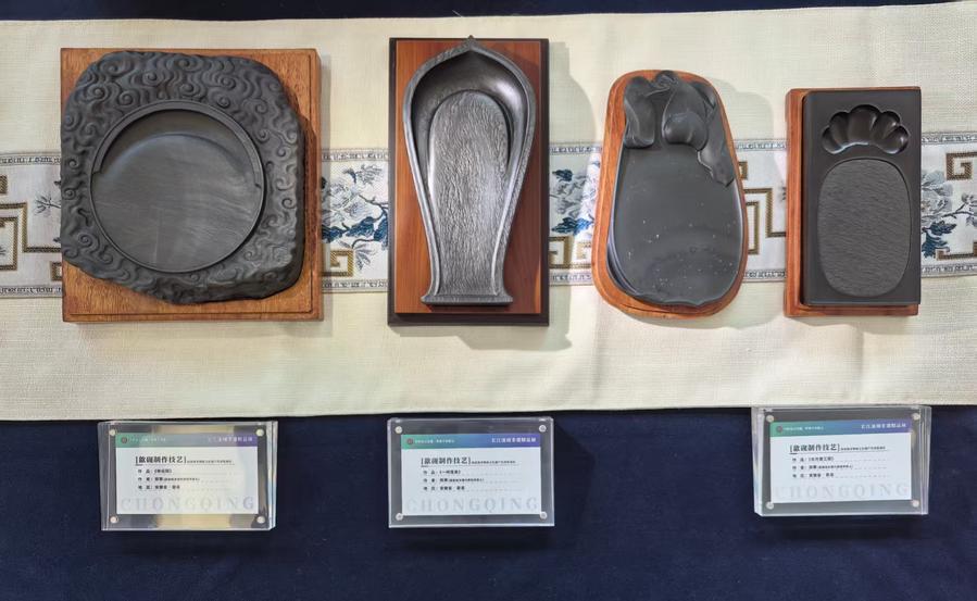 安徽展区歙砚系列作品。新华社记者 肖瑶 摄