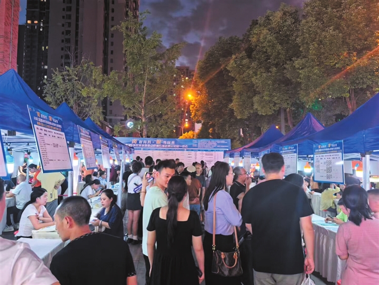 一场在夜色中铺开的招聘会,不仅点亮了城市的夜空,更照亮了众多求职者的职业之路。创新服务模式、延伸就业链条、精准对接需求——涪城区正以更暖心的举措、更贴心的服务,努力书写稳就业、惠民生的新答卷。(涪城融媒 记者 尹秦 王泽宇 见习记者 刘燚 文/图)