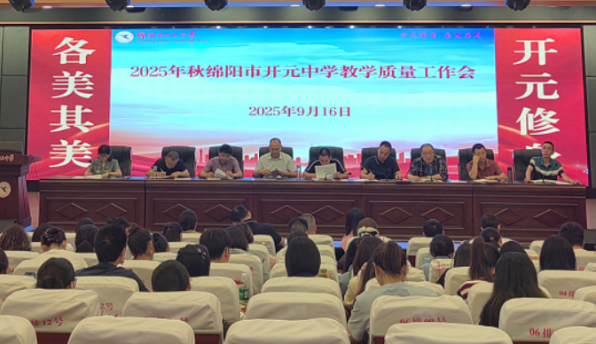 绵阳新闻网讯 9月16日下午,绵阳市开元中学在和美楼六楼学术厅召开了以“聚焦核心议题 共绘发展蓝图”为主题的2025年秋季教学质量专题会议。会议旨在全面总结过往教学经验,精准部署新学期工作重点,围绕教学常规管理、青年教师培养、课改深化推进以及安全管理等核心议题展开,力求凝聚共识、实现创新突破,推动学校教学质量再上新台阶。该校党委书记王力,党委副书记、校长敬正雄,各年级分管领导以及全体质量组长参会。会议由教科室副主任阳林凤主持。