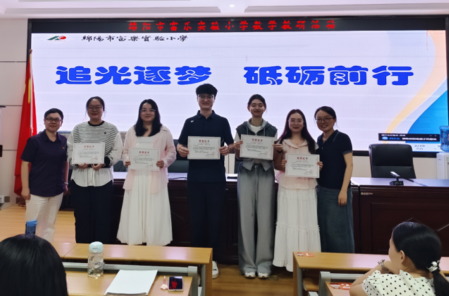 活动中,入职满一年的教师对工作作了总结。他们表示,在组内教师的指导下,课堂教学从紧张到张弛有度;课后困惑从只为批改作业到分析反馈调整;他们在不断尝试使用情境教学、小组合作等方法激发学生的学习兴趣,探索将数学与生活、科学实验跨学科融合的契机;他们也坦诚反思自身不足,奋力向优秀教师学习,打磨教学能力。