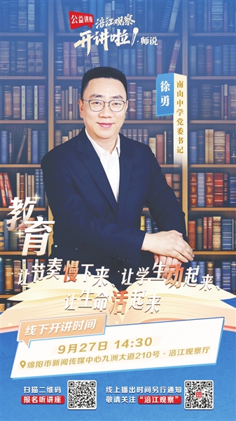 9月27日14时30分,“涪江观察开讲啦·师说”公益讲座将邀请南山中学党委书记徐勇担任主讲嘉宾