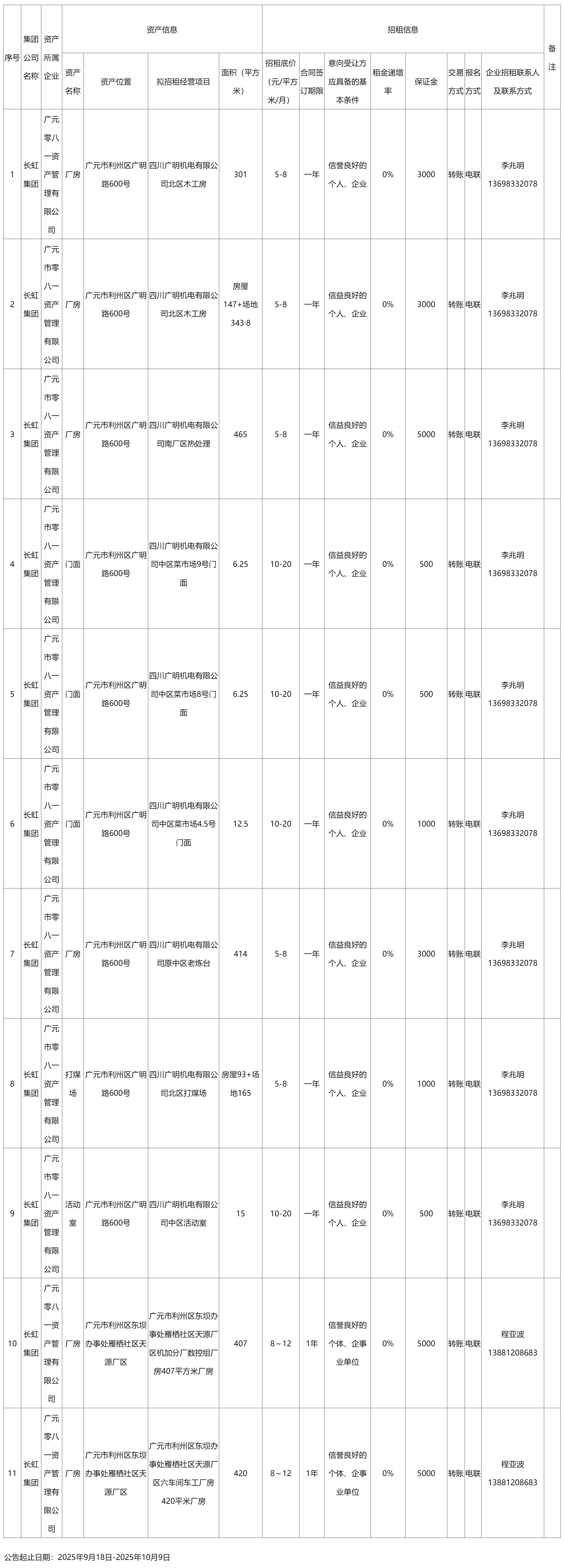 广元零八一资产管理有限公司资产出租公告