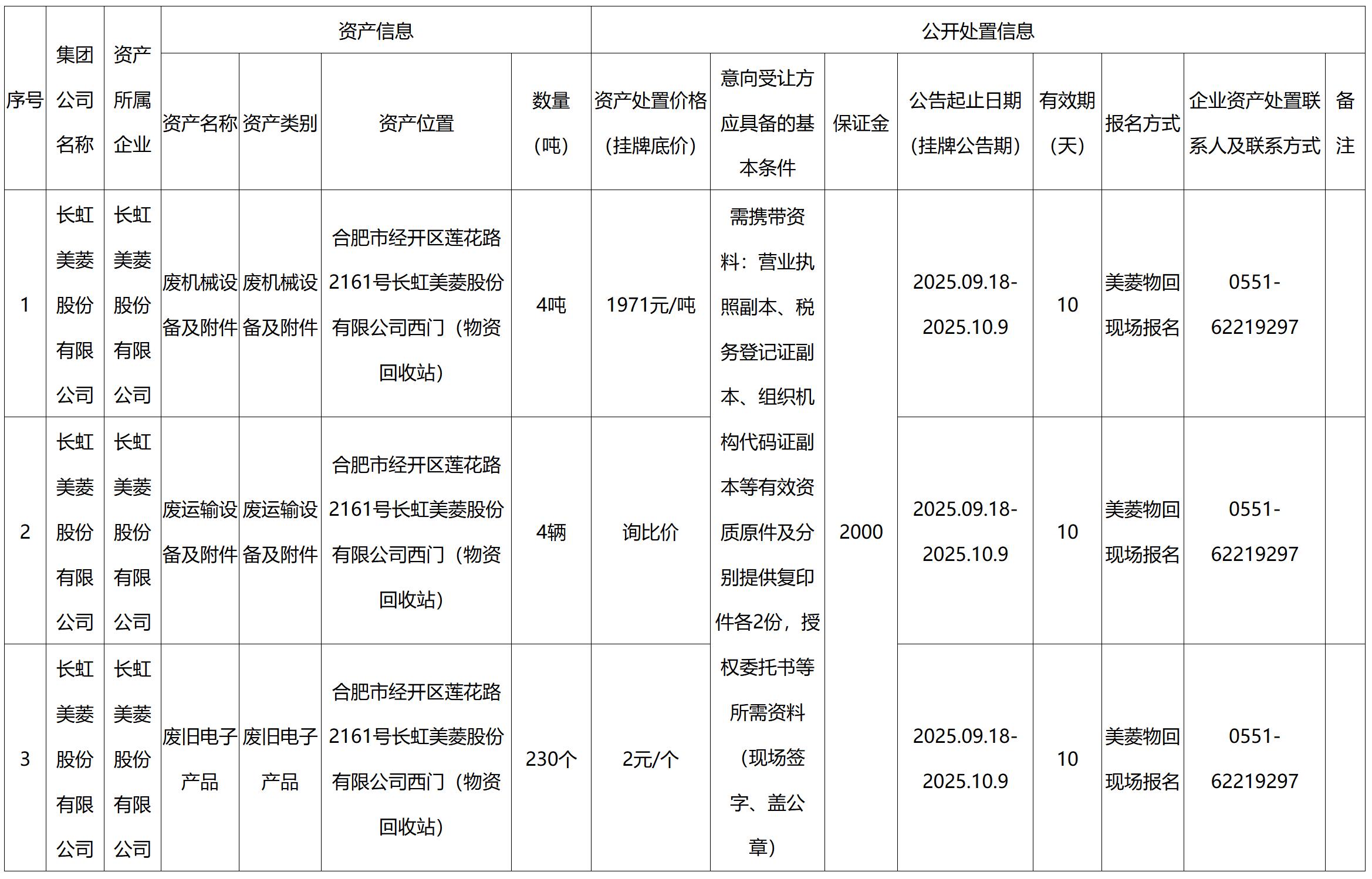 长虹美菱股份有限公司资产处置公告