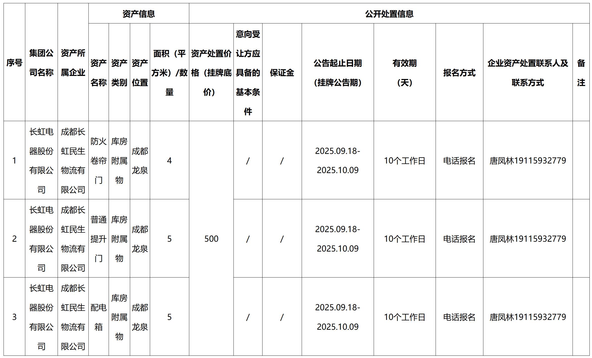 四川长虹民生物流股份有限公司企业资产处置公告
