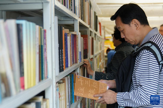 9月22日,市民在地坛书市上挑选书籍。
