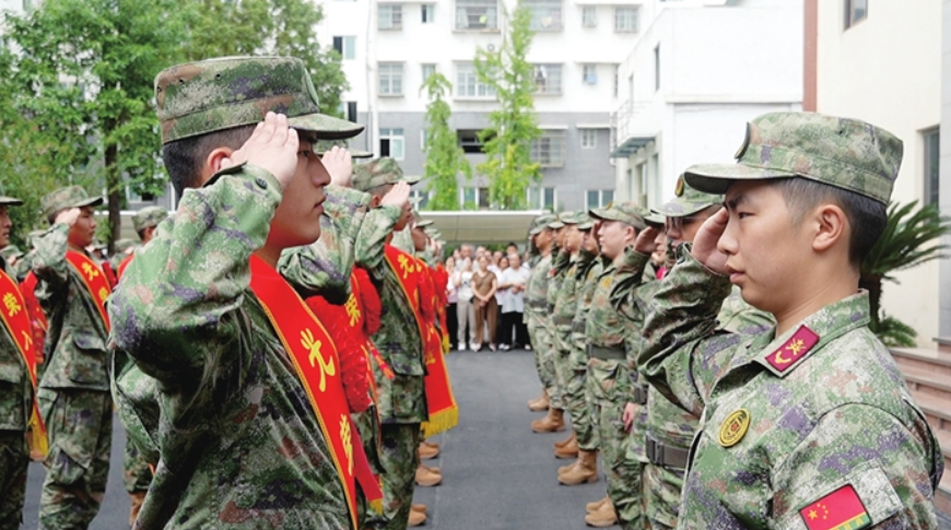 入伍新兵仇川显表示:“我选择第三次应征入伍,是因为从小就受‘两弹一星’精神熏陶。作为应征青年,我将继承和发扬好‘两弹一星’精神和抗战精神,刻苦训练、建功军营、不负青春,为强军兴军事业贡献力量。”