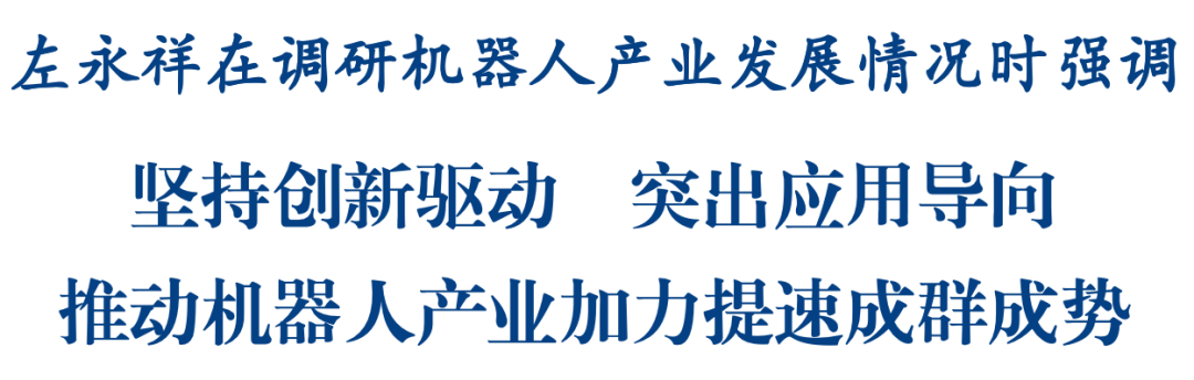 调研过程中,左永祥强调,机器人产业具有极大的发展潜力、市场空间,是我市正在大力培育的重点特色产业新赛道。全市各级各有关部门要进一步深化认识、把握机遇,围绕产业生态和全产业链持续用力、久久为功,瞄准未来超前布局产业链核心环节,推动机器人产业加快发展壮大。要着力促进产学研深度融合,支持企业、高校等各类创新主体开展联合攻关,聚焦人形机器人“大脑”“小脑”“肢体”“感知”等环节,加快突破一批关键技术,以科技创新引领产业创新。要丰富拓展应用场景,加强供需对接和场景开发,支撑和吸引更多科技成果落地转化,推进人形机器人在先进制造、物流、医疗、家政、特种环境等领域的应用,更好满足人民群众对美好生活的向往。要优化产业发展生态,加强人才、金融等要素保障,持续完善培育机制,加快培育更多机器人领域的科技领军企业、链主企业、制造业单项冠军企业和专精特新企业,不断做强链条、做大规模,努力打造具有全国影响力的机器人产业发展高地。