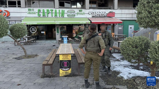 9月24日,在以色列南部红海海滨城市埃拉特,以军士兵在无人机袭击现场开展工作。新华社发(以色列国防军供图)