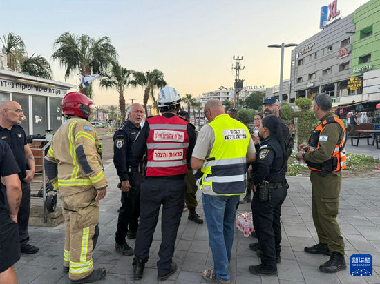 9月24日,在以色列南部红海海滨城市埃拉特,以军士兵和急救人员在无人机袭击现场开展工作。新华社发(以色列国防军供图)