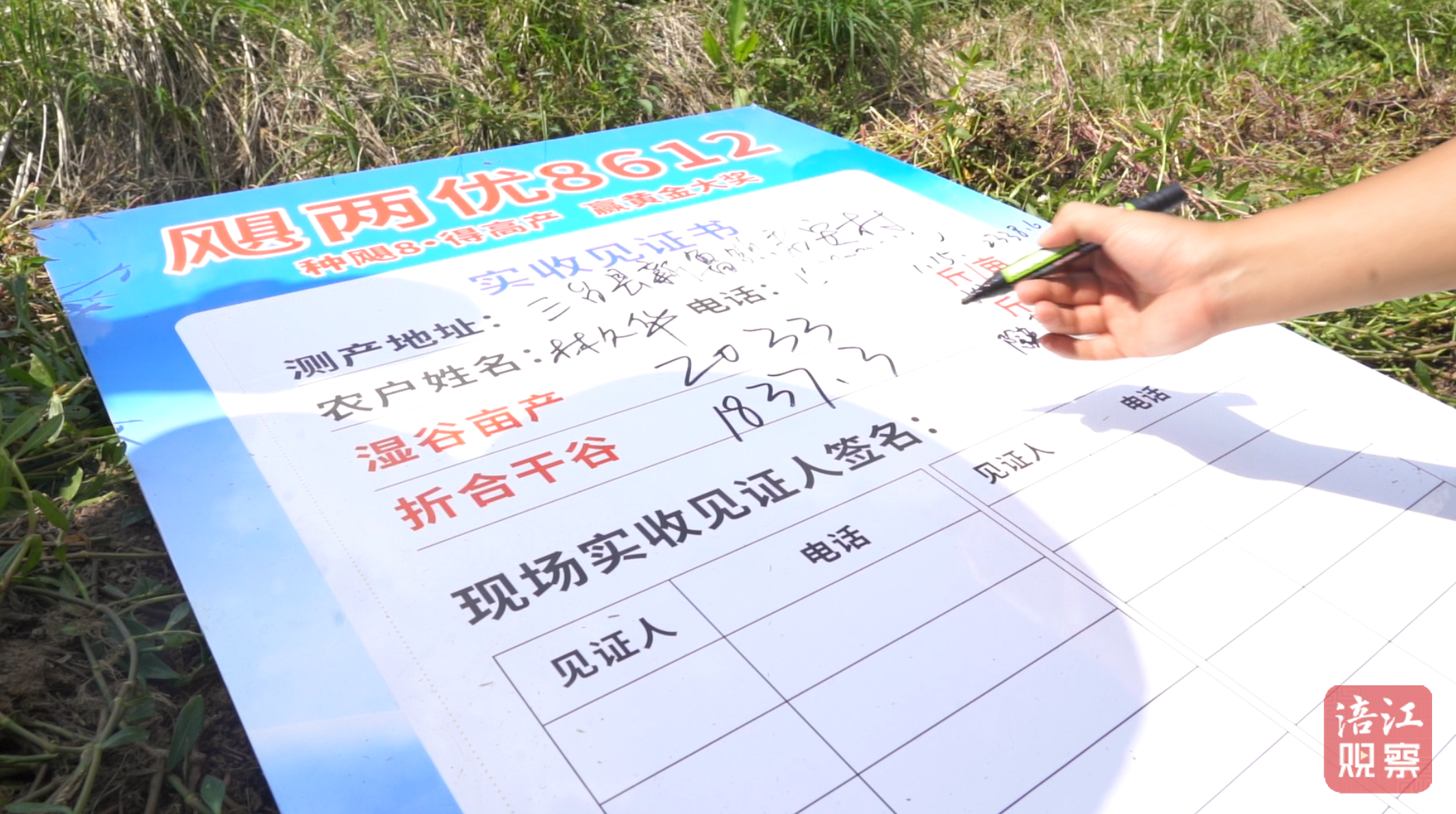 田间地头,三台绿州农业和湖南隆平种业两家公司的技术人员正紧张作业。他们先用GPS精准测量地块面积,随后将收割的稻谷装入浅绿色编织袋。