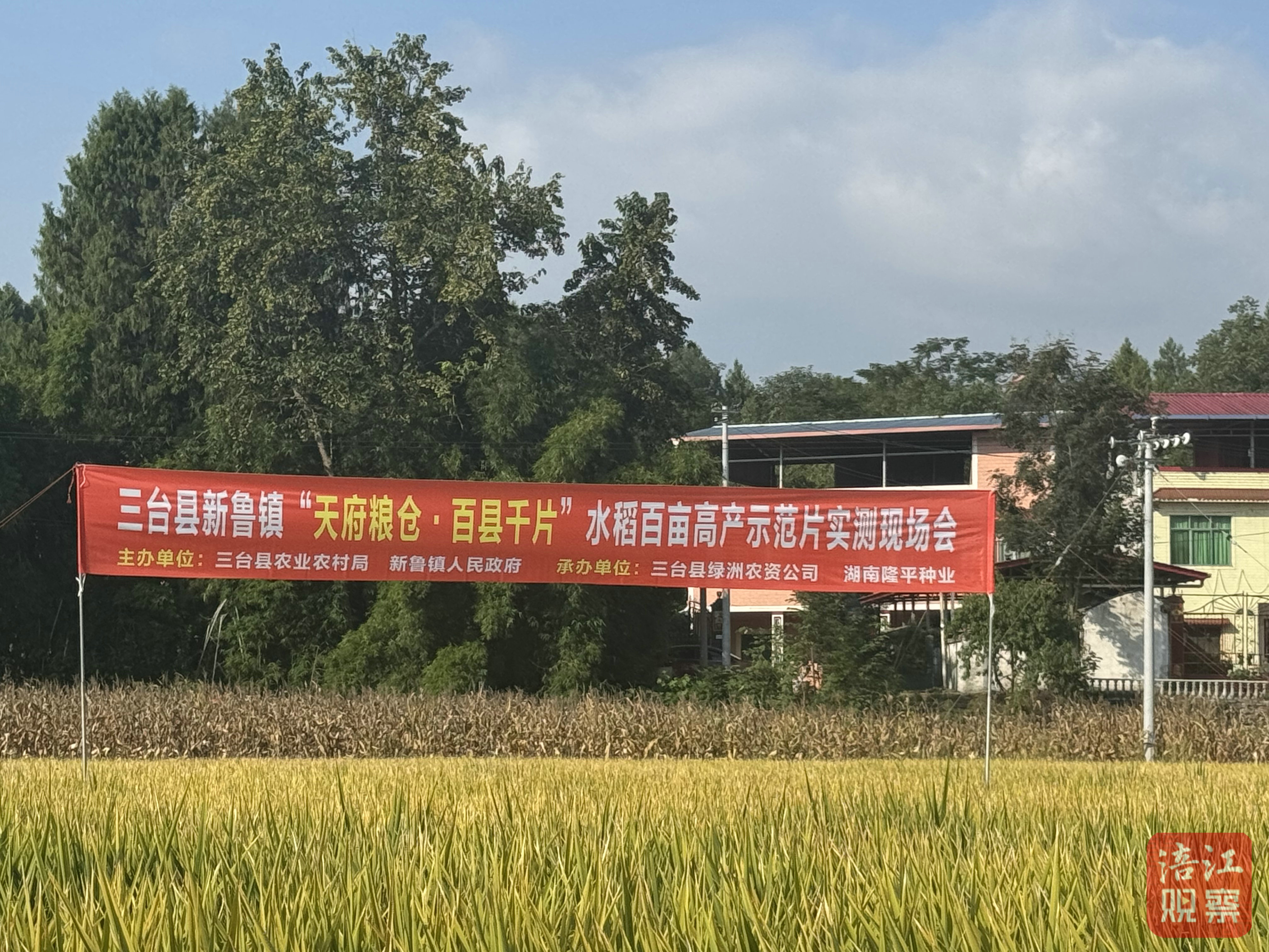 金秋九月,稻穗弯弯!9月25日,在绵阳市三台县新鲁镇君安村的稻田里,一条“天府粮仓·百县千片水稻百亩高产示范片实测现场会”的红色横幅在金黄稻浪中格外醒目。