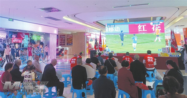 在江油市圣名购物广场,大润发超市在顾客休息区设置了大屏幕和观看席,吸引消费者和球迷纷纷停留观看赛况转播,一起为绵阳健儿加油。现场还设置了趣味问答环节,鼓励观众踊跃参与互动,赢取丰厚好礼。当绵阳队率先进球后,现场顿时爆发出欢呼场。球迷齐先生说:“大家聚在一起看球赛,感觉真的很嗨!”