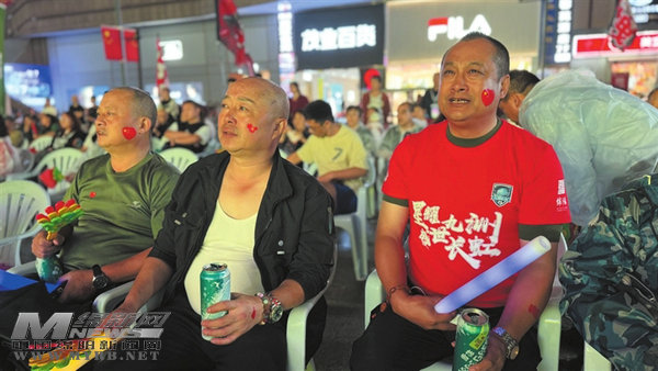 绵州记忆兴达广场设置的超大屏幕吸引了近百球迷观赛