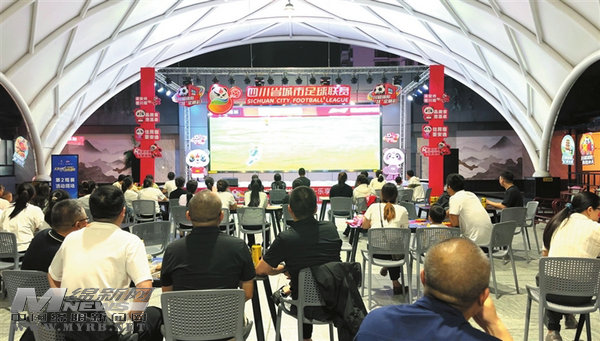 在经开区城南vv街举办的开街活动中,将川超绵阳队首场比赛转播作为开街活动的重要节目,众多群众现场观赛,为绵阳队加油。经开区经发局工作人员罗成杰说,川超活动期间,商户将依托川超活动,开展各类促消费活动,为川超加油助力,进一步推动经开区人气聚集,商气活跃,提升三江湖畔消费品牌。