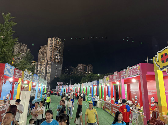 “扫码领券,满50减20!”9月27日晚,宜宾市体育中心外,场外的气氛和场内一样热烈。当晚,宜宾长江首城队主场迎战自贡灯城燊龙队,场外早早搭起特色街区,数十个展区带来宜宾各区县的美食、美酒,叠加消费券,让市民和游客大饱口福。