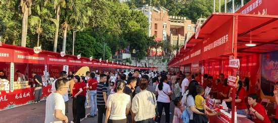 攀枝花体育场外的展示区内,人潮涌动。 攀枝花市委宣传部供图