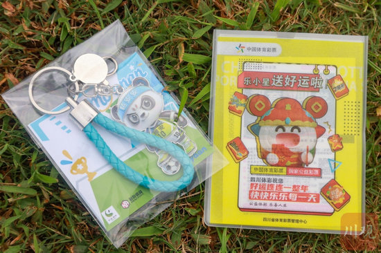 雅安为球迷准备的盲盒里,可以开出“隐藏款”大乐透体育彩票、川超吉祥物“貊安安”限量版钥匙扣等。黄刚 摄