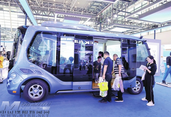 9月28日,在第十三届中国(绵阳)科博会上,观众体验无人驾驶汽车。