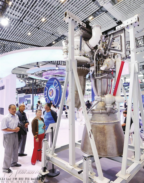 9月28日,在第十三届中国(绵阳)科博会上展出的液氧甲烷火箭发动机。