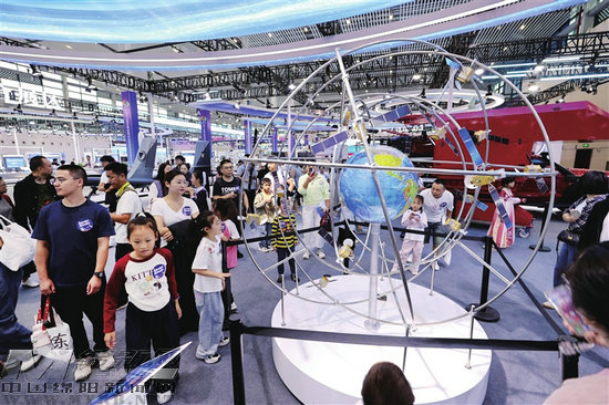 9月28日,在第十三届中国(绵阳)科博会“南天门计划”主题展区,观众沉浸式体验科幻装备的魅力。