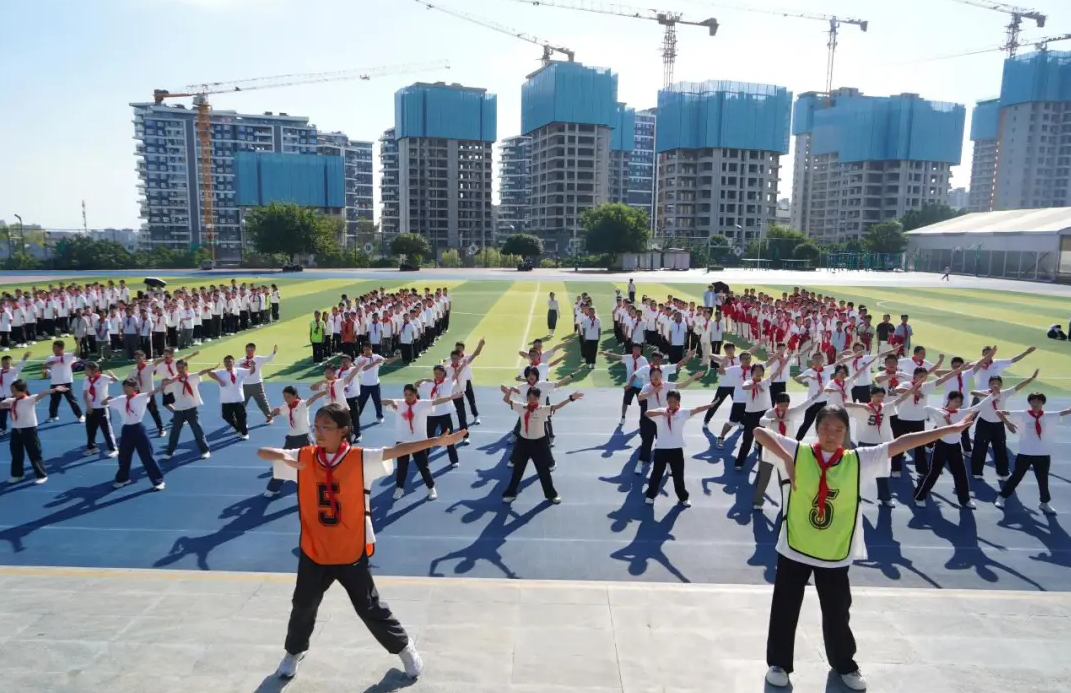 赛前1周,该校多部门协同启动筹备工作,为比赛的顺利开展保驾护航。体育老师利用大课间和体育课时间,针对手臂角度、节奏配合等易错点对各班进行专业指导,课后由领操员带领复习,确保动作整齐划一。