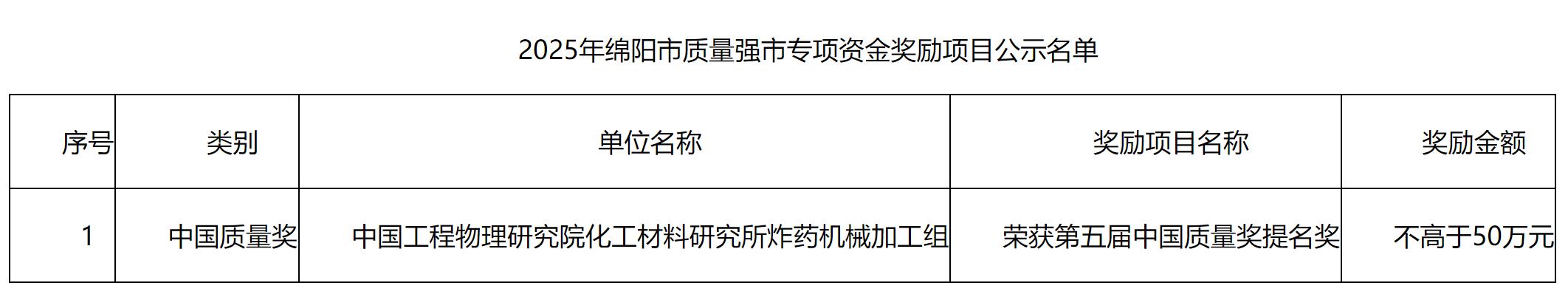 附件:2025年绵阳市质量强市建设专项资金奖励项目公示名单