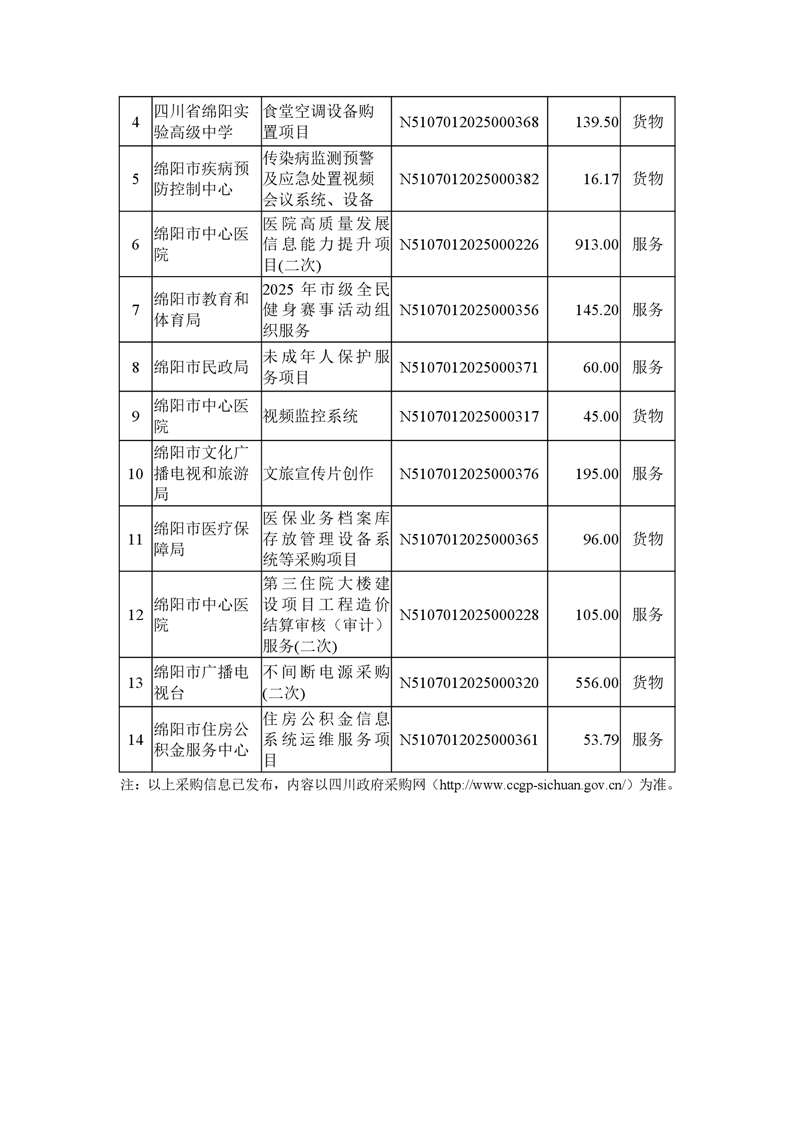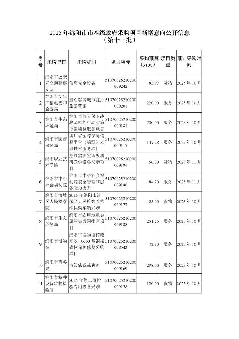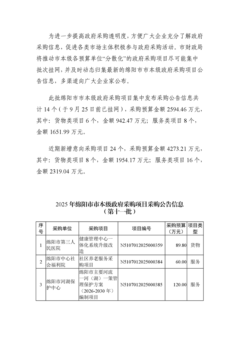 38个政府采购项目的“机会清单”出炉!(2025年第十一批)绵阳市市本级政府采购项目信息动态(2025年第十一波)