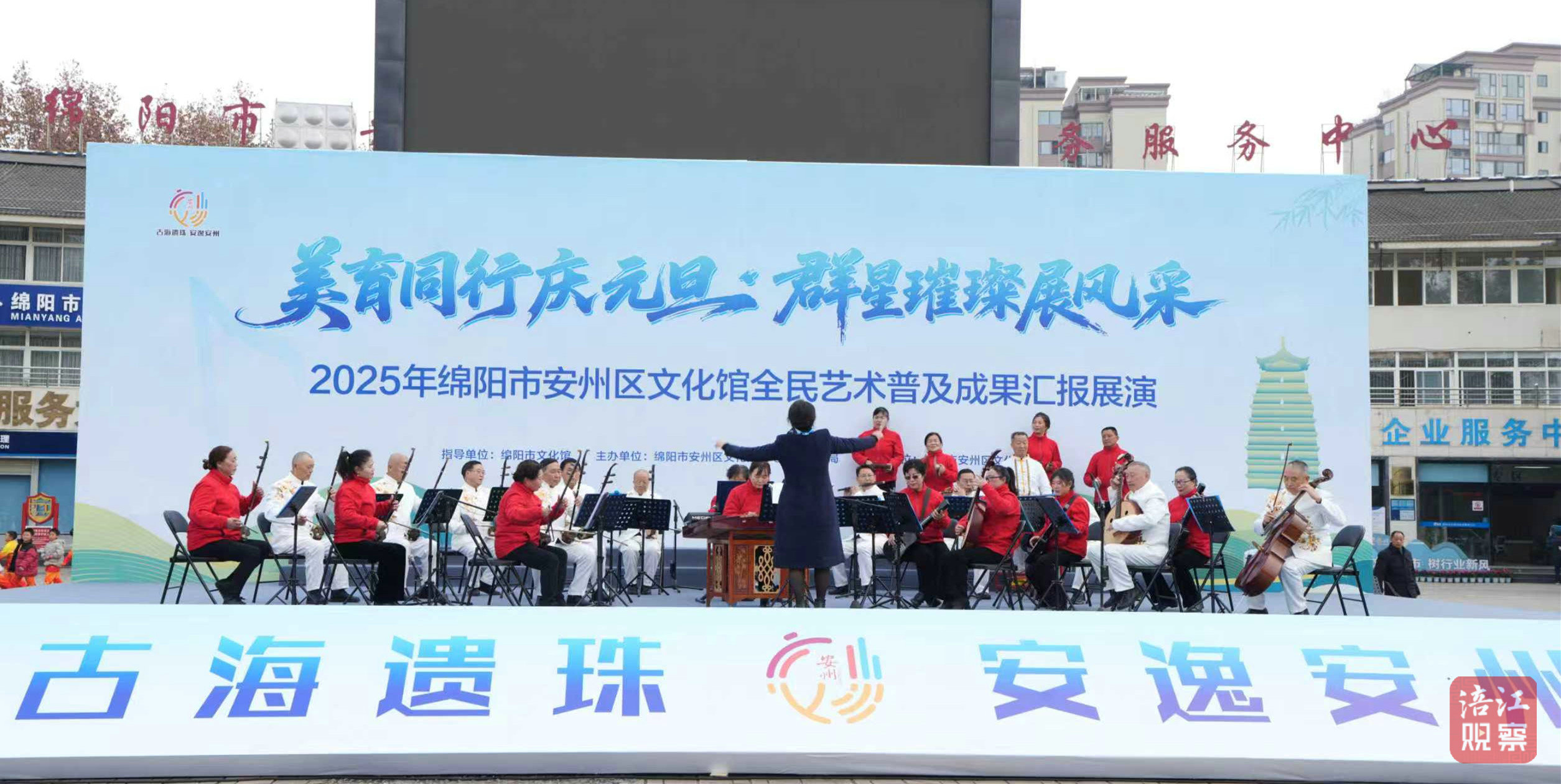 在安州区文化广场,“美育同行庆元旦·群星璀璨展风采”全民艺术普及成果汇报展演举行。这场集艺术展演、非遗展示与书画展览于一体的文化盛宴,以多元艺术形式集中呈现全区全民美育工作成效,为市民带来一场兼具观赏性与文化性的视听享受。