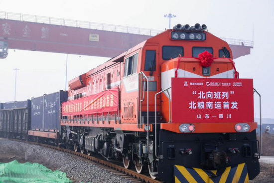 2026年1月5日,一列载有72标箱小麦的货运班列从山东菏泽沙土集内陆港缓缓驶出,发往四川成都普兴站。这标志“北向班列”北粮南运项目成功首发,为畅通南北粮食流通大动脉、保障国家粮食安全再添重要支撑。