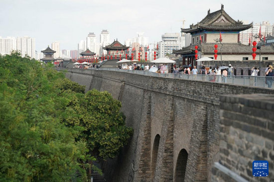 西安城墙南段东侧景色(2025年9月12日摄)。