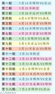 经过现场抽签,9支球队分别抽到各自落位签。绵阳队主场时间分别为:3月14日、4月4日、4月18日、5月1日、5月23 日、6月6 日、6月20 日、7月4日。总决赛第一轮第一场比赛计划在3月14日举行,由绵阳队主场对阵乐山队。