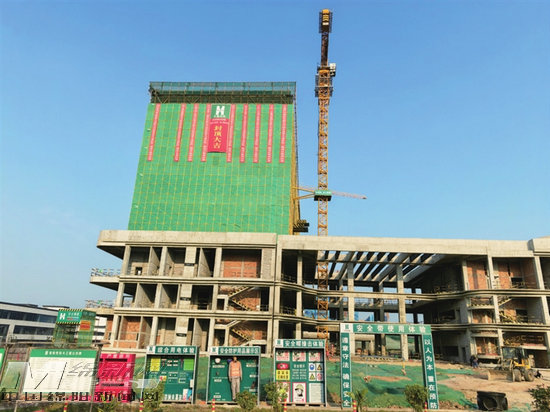 “项目于2025年3月启动土石开挖,于10月26日实现主体结构工程封顶。目前,我们正抓紧时间进行二次结构砌体和水电、消防、暖通主要管道安装工作。”项目现场负责人黄虎林介绍,目前项目正按计划稳步推进。