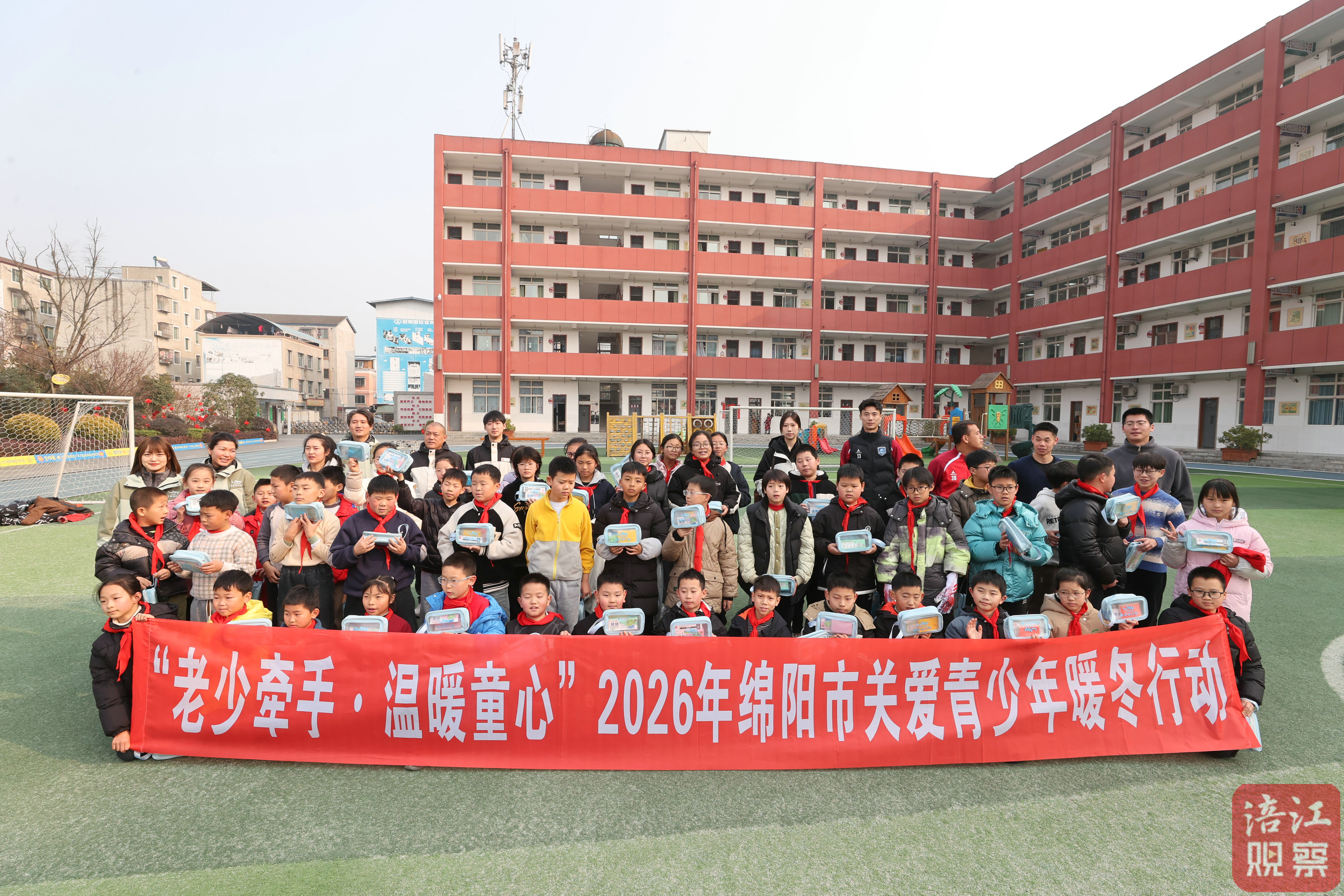 1月13日,“老少牵手·温暖童心”2026年绵阳市关爱青少年暖冬行动在绵阳高新区创新第三小学举行。活动特别邀请了“川超”绵阳队周翥、戴宇两位球员分享球场上的拼搏故事,并开展足球教学活动。