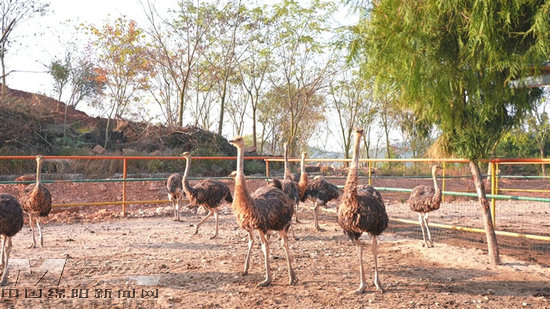 园区内的养殖区同样热闹非凡,成群的鸵鸟在果园改造的场地里欢快奔跑。在盘活林地的同时,园区还建起全县首个规模化鸵鸟养殖基地,集研学旅为一体,形成了立体种养的新格局。预计养殖鸵鸟300余只,后期还将探索群众代养模式养殖,发展壮大成为镇域特色产业,带动群众增收致富。