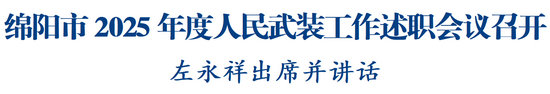绵阳新闻网讯 1月13日,绵阳市2025年度人民武装工作述职会议召开,省委常委、市委书记、绵阳军分区党委第一书记左永祥出席会议并讲话。他强调,要深入学习贯彻习近平强军思想和党的二十届四中全会精神,全面落实党中央和省委决策部署,坚决扛起党管武装政治责任,持续深化政治整训,聚力练兵备战,强化作风建设,奋力推动国防动员和后备力量建设高质量发展,为实现建军一百年奋斗目标贡献更大力量。