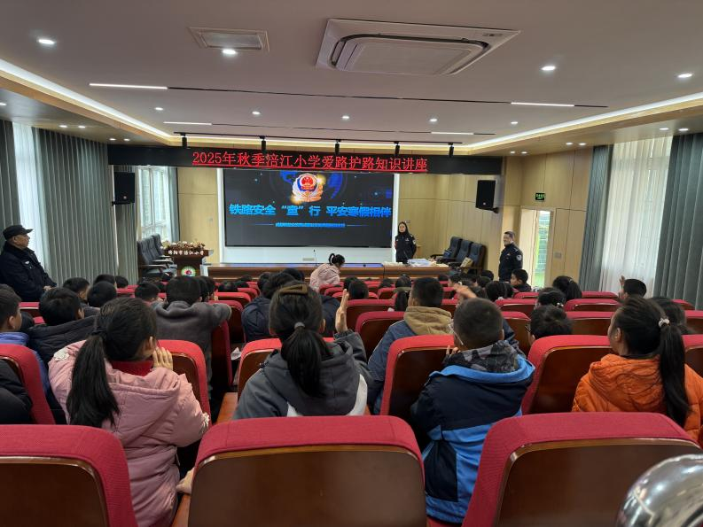 为了增强学生的铁路安全意识,筑牢寒假安全防线,2026年1月14日上午,游仙区涪江小学特邀成都铁路公安处绵阳站派出所民警来校,为四年级全体学生开展了以“铁路安全‘童’行 平安寒假相伴”为主题的2025年秋爱路护路知识讲座活动。
