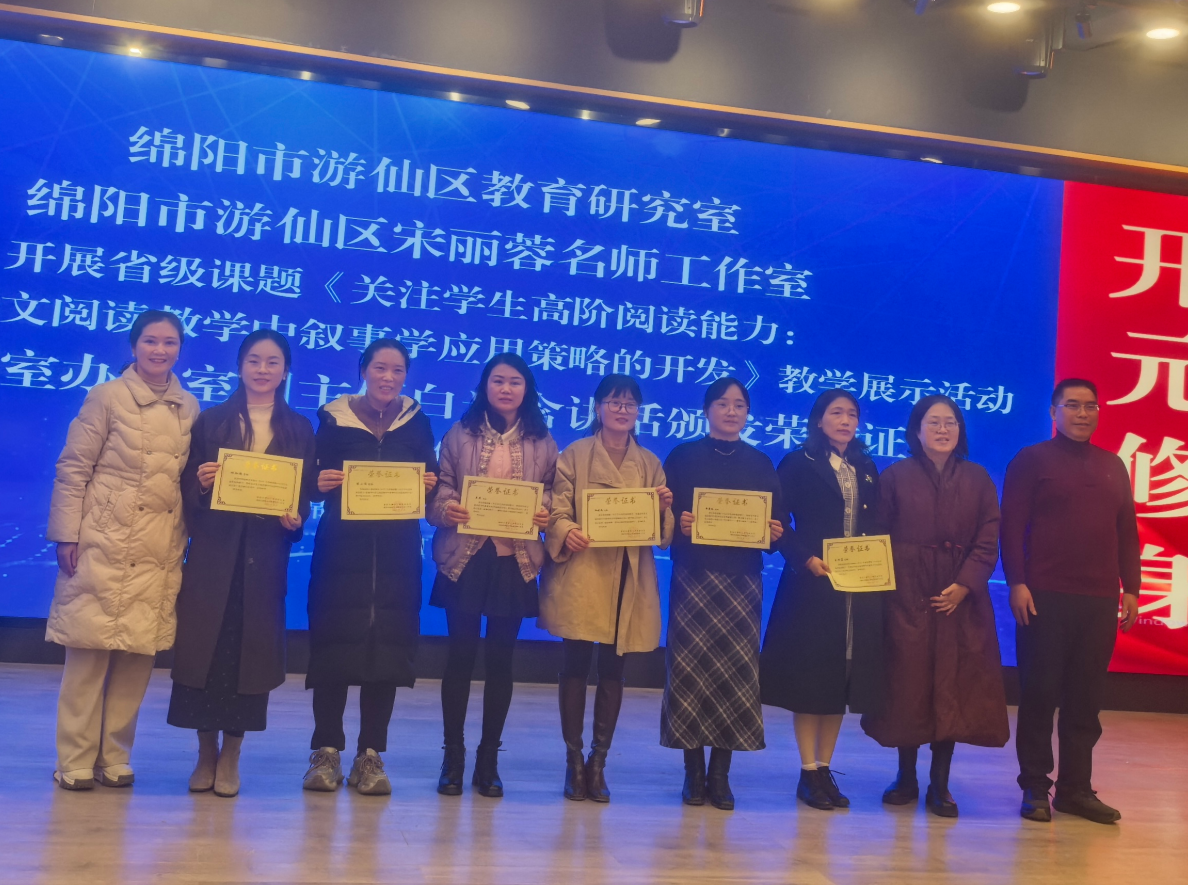 游仙区教研室白光涵主任从初高中语文教学衔接的宏观视角提出专业建议,明确初中阶段应侧重叙事技巧的识别与感知,高中阶段则需聚焦叙事学知识的学以致用与能力转化,为教学实践指明方向。她对本次活动的高质量开展与显著成效给予充分肯定,并为参与授课及研讨的教师颁发荣誉证书,激励老师们深耕教研、持续成长。