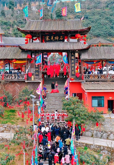 “花果山庄”院子里,多肉植物蓬勃生长,餐厅墙壁上,色彩鲜艳、图案古朴的羌绣作品展现独特的羌文化魅力。农文旅交流中心内,不仅年货摆得满满当当,羌绣荷包、水磨漆摆件等文创产品琳琅满目;为了迎接来村里过年的客人,整个村寨正在紧锣密鼓筹备着一系列丰富的新春民俗活动……