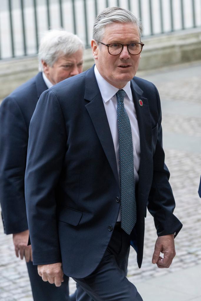 2025年5月8日,在英国伦敦,英国首相斯塔默抵达威斯敏斯特教堂参加感恩仪式。新华社发