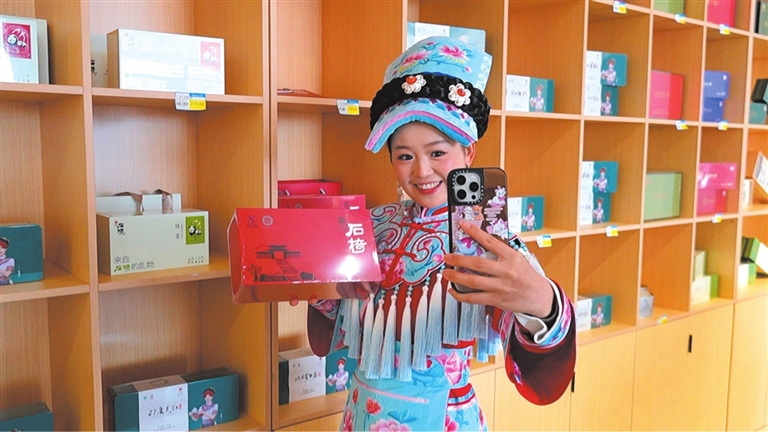 随后,陈新一穿过白绒花缀满枝头的枇杷林,来到村里的农文旅交流中心销售大厅,打开手机支架,进入直播间。“大家好,我是尔玛新一,今天带大家看看我们石椅村的年味——刚熏好的腊肉,还有高山苔子茶……”她的声音清脆而有力量,屏幕另一端的观众纷纷留言点赞。这场直播不仅是为了卖货,更是为了把家乡的味道和文化传播到更远的地方。
