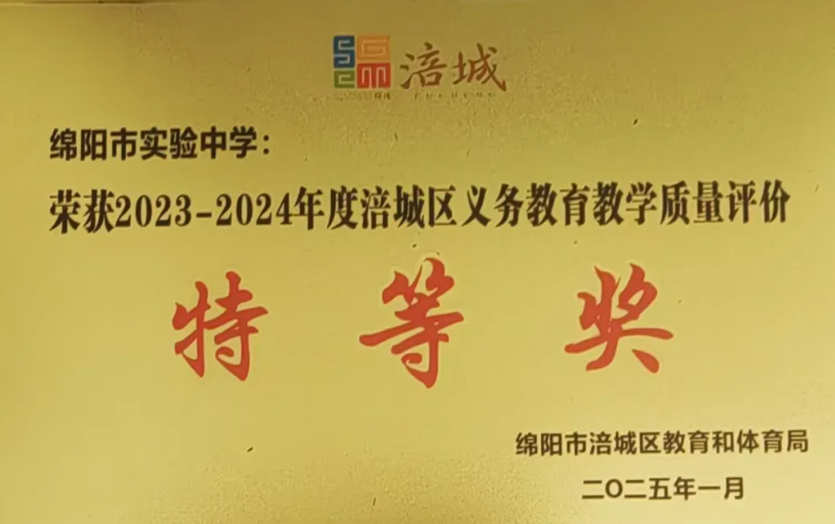 绵阳新闻网讯 近日,绵阳市教育和体育局发布2024-2025学年义务教育质量评价结果通报,绵阳市实验中学(绵阳七中)凭借卓越的办学品质与综合育人成效,荣获绵阳市初中阶段义务教育质量评价“A组表现特别突出学校”荣誉称号(初中最高奖项)。