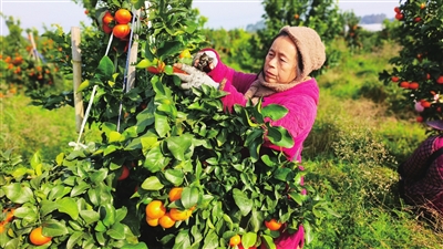 九合村农户在采摘柑橘。