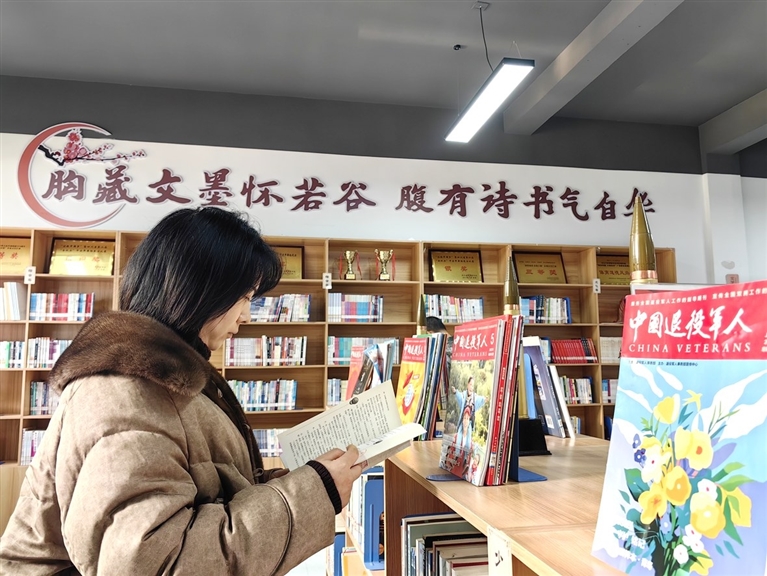 界牌镇居民在“拥军特色文化站”阅读书籍。记者 张登军 摄