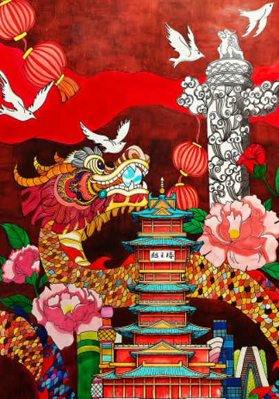 卓越绘画奖: 《荣光》 张惠媛(9.23)指导教师:文顺明;《中国年》 唐启文(9.11) 指导教师:吴斌 ;