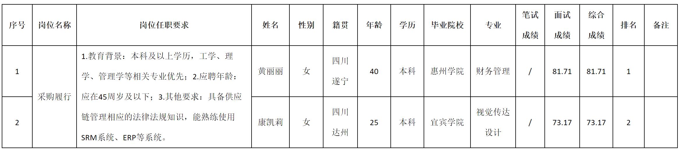根据四川九州电子科技股份有限公司发布的招聘公告及招聘相关规定,现将测试成绩予以公示。