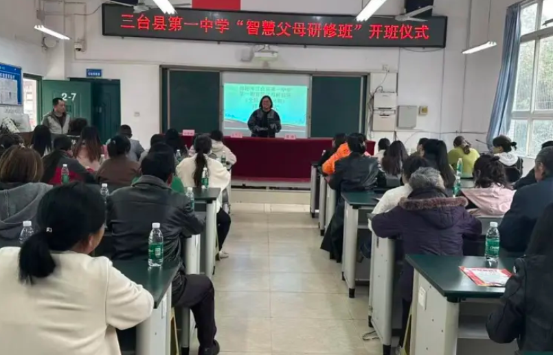 绵阳新闻网讯 1月16日,三台县第一中学在学校会议室开展了以“时代育新人,智慧父母向未来”为主题的第一期“智慧父母研修班”活动。此次活动由该校与四川润梓庭教育咨询公司联合举办。三台一中相关领导,首席导师张艺雯,研修班带导老师唐春梅,与全体学员家长齐聚一堂,共同见证这场历时两个月、涵盖8次专题研修的家校共育成长盛典。