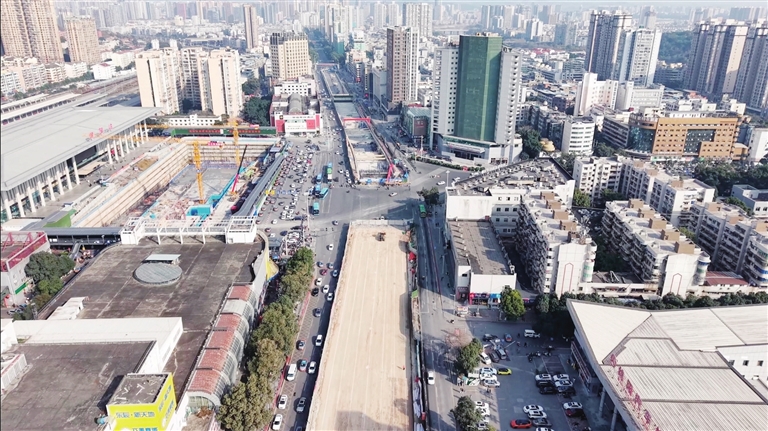 绵阳火车站站前广场及周边配套设施建设项目施工现场。 记者 李玉佳 摄
