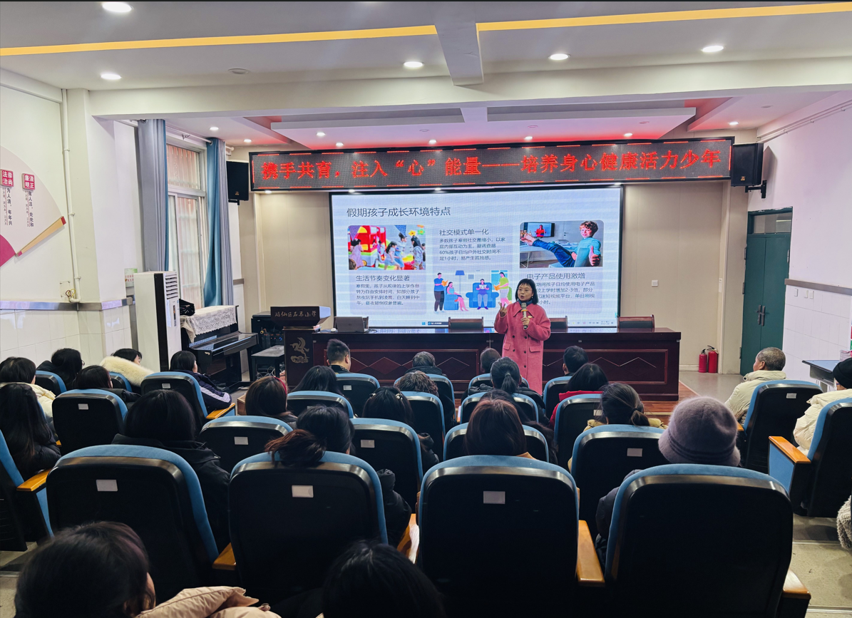 2026年1月20日,游仙区石马镇妇联特邀游仙区“YOU爱”家庭教育指导中心唐子霖老师来石马小学,开展了以《培养自信阳光身心健康的活力少年》为主题的家庭教育讲座活动。本次活动由石马镇妇联家庭教育指导工作站主办,石马小学协办,旨在帮助家长在寒假期间科学引导孩子健康成长。